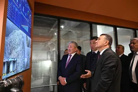 Бишкек, 14.02.26. /Кабар/. Председатель кабинета министров КР-руководитель администрации президента Адылбек Касымалиев и премьер-министр Таджикистана Кохир Расулзода ознакомились с деятельностью экотехнологического завода по выработке электроэнергии путем утилизации твердых бытовых отходов.