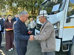 Ключи от нового пикапа марки JAC T8 и эвакуатора вручил полномочный представитель президента в Баткенской области Мамыржан Рахимов. Передавая технику, глава региона подчеркнул её важность для города.