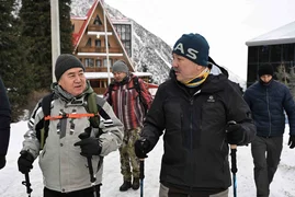 Бишкек, 24.01.26. /Кабар/. Председатель кабинета министров Адылбек Касымалиев совместно с членами кабинета министров и сотрудниками Администрации президента совершил пешую прогулку в Государственном природном парке «Ала-Арча».