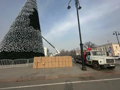 Бишкек, 15.01.26. /Кабар/. В Бишкеке на площади Ала-Тоо приступили к демонтажу главной новогодней елки, сотрудники городских служб начали снимать украшения и игрушки. Об этом агентству «Кабар» сообщили в столичной мэрии.