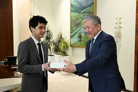 В завершение встречи Адылбек Касымалиев, пожелав дальнейших успехов в учебе и новых достижений, вручил ему памятный подарок.