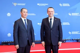 Бишкек, 03.04.26. /Кабар/. На полях Международного транспортно-логистического форума в Санкт-Петербурге состоялась двусторонняя встреча министра транспорта и коммуникаций КР Талантбека Солтобаева с главой Минтранса РФ Александром Никитиным.