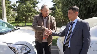 Ключи от новых авто вручил начальник Каракольского городского управления муниципальным имуществом Саламат Чыныбеков.