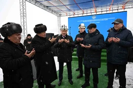 Бишкек, 18.12.25. /Кабар/. Председатель кабинета министров Адылбек Касымалиев принял участие в церемонии закладки капсулы под строительство бассейна декадного регулирования на реку Ак-Суу в Московском районе Чуйской области.