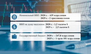 Номинальный ВВП за 5 лет возрос с 639 млрд сомов, до двух триллионов сомов. Валовый внутренний продукт на душу населения за тот же период удвоился, с 1,2 тыc. до 2,5 тыс. долларов. А государственный бюджет увеличился сразу в пять раз.
