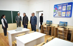 Далее глава государства побеседовал с педагогическим коллективом школы, обсудив вопросы развития системы образования и условия труда учителей.