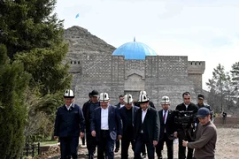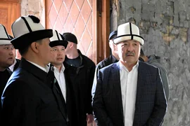 Бишкек, 24.03.26 /Кабар/. Председатель кабинета министров – руководитель администрации президента Кыргызской Республики Адылбек Касымалиев в рамках рабочей поездки в Таласскую область посетил Кыргызский национальный комплекс «Манас Ордо» и ознакомился с ходом его реконструкции.