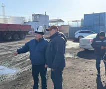 В рамках визита министр также ознакомился с работой автоколонны угольной базы. В настоящее время в составе автоколонны задействовано 50 автопоездов марки HOWO. Кроме того, на ПРП в круглосуточном режиме функционируют 4 фронтальных погрузчика и 1 экскаватор, обеспечивая бесперебойный прием, хранение, накопление и отгрузку угля в 24-часовом режиме.