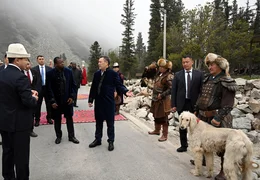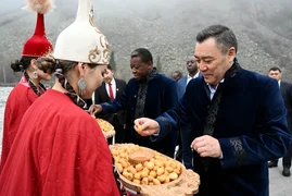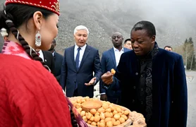 Бишкек, 29.04.26. /Кабар/. Президент Садыр Жапаров и председатель Совета министров Тоголезской Республики Фор Эссозимна Гнассингбе 28 апреля посетили этнокультурную программу, организованную в Государственном природном парке "Ала-Арча".