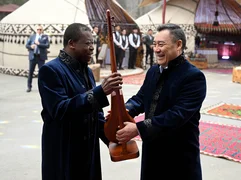В ходе мероприятия Садыр Жапаров преподнес Фору Эссозимна Гнассингбе кыргызский музыкальный инструмент комуз, а также угостил его традиционными этнонапитками.