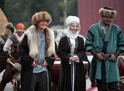 Также внимание гостей привлекли тайганы — национальная порода охотничьих собак, ловчие орлы, а также традиционные войлочные ковры — шырдаки.