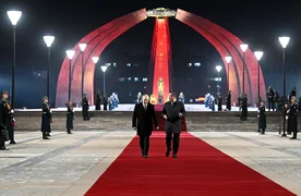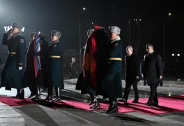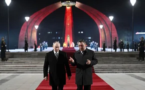 Бишкек, 26.11.25. /Кабар/. Президент Кыргызской Республики Садыр Жапаров и президент Российской Федерации Владимир Путин в рамках государственного визита российского лидера в Кыргызстан, возложили венки к Вечному огню на площади Победы в городе Бишкек.