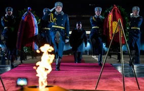 Завершилось возложение венков минутой молчания в память о погибших в годы Великой Отечественной войны, сопровождавшееся троекратным оружейным залпом.