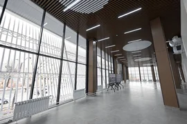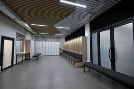 На первом этаже размещены тренировочный зал, раздевалки, душевые, медицинский пункт и конференц-зал.