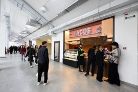 На втором этаже расположены фуд-корт, складские, санитарные и технические помещения, а также зрительские трибуны.