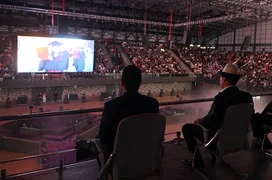 Бишкек, 10.11.25 /Кабар/. Президент Кыргызской Республики Садыр Жапаров сегодня, 10 ноября, принял участие в церемонии открытия спортивной арены после капитальной реконструкции.