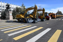 Затем Садыр Жапаров осмотрел спецтехнику, приобретенную для города Талас и районов области. Всего 42 единицы техники, в том числе фронтальные погрузчики, бетоносмесители и асфальтоукладчик.