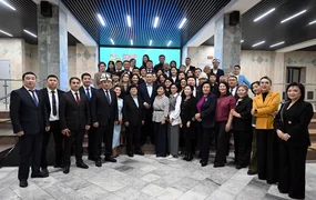 В завершение глава государства побеседовал с творческим коллективом и поздравил их с профессиональным праздником - Днем работников радио и телевидения. Сотрудники, в свою очередь, выразили благодарность за оказываемую поддержку и внимание к развитию телерадиокорпорации.