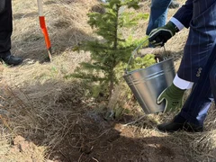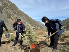 В связи с этим сегодня, 3 апреля, по инициативе президента Кыргызстана Садыра Жапарова в национальном природном парке «Ала-Арча» состоялась церемония посадки елей с участием представителей государств-членов ШОС.