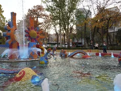 Ремонт фонтана включал полный комплекс демонтажных и восстановительных работ. Были очищены поверхности методом пескоструйной обработки, демонтированы старая система подачи воды, избыточный слой бетона над мозаикой, старое покрытие территории и освещение.