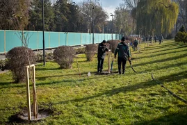 Бишкек, 15.11.25. /Кабар/. Мэр столицы Айбек Джунушалиев принял участие в осенней высадке деревьев, которая прошла в рамках мероприятий по озеленению города.