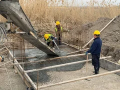 На сегодняшний день уже завершён монтаж пролётных плит на мосту через реку Нооруз. На мосту через канал завершена установка опорных конструкций. Параллельно продолжаются работы по подготовке основания дороги к выравниванию.
