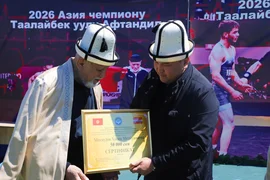 Бишкек, 15.04.26 /Кабар/. Жители Таласской области с большими почестями встретили победителя чемпионата Азии Афтандила Таалайбек уулу, его тренера Хакима Махмудова и серебряного призера Олимпиады в Париже Жоламана Шаршенбекова.